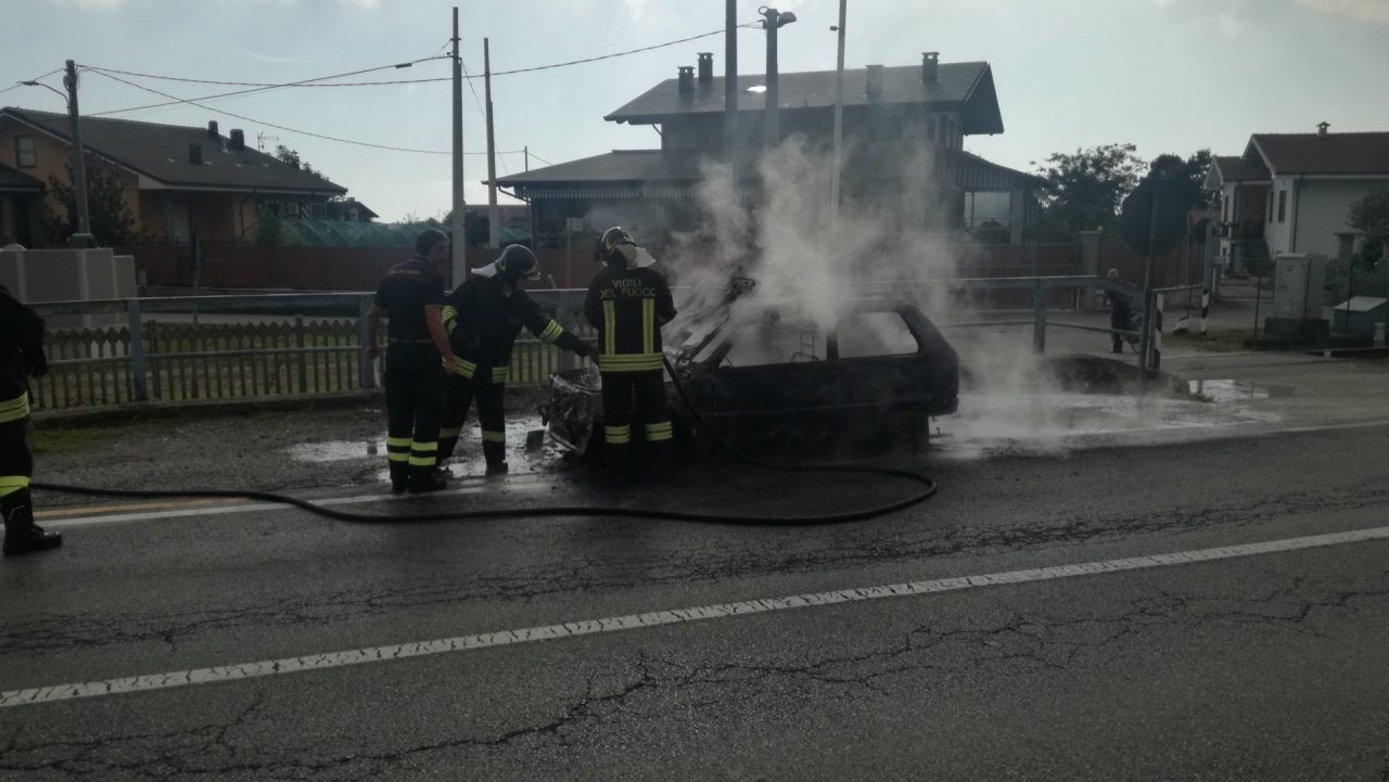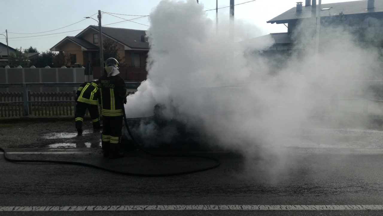 Auto in fiamme, attimi di apprensione a Valperga. Il concudente è rimasto illeso.