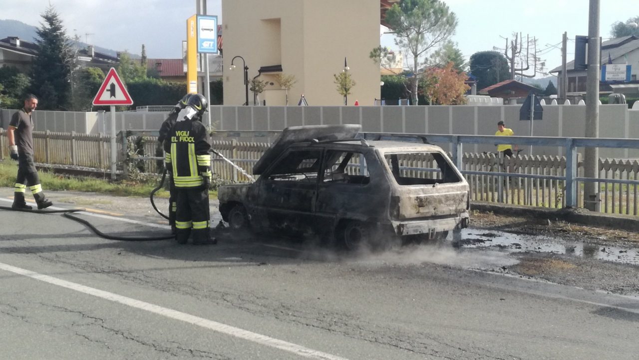 Attimi di appresione e paura intorno alle 10 di questa mattina, lunedì 24 settembre, a Valperga. Una vettura, precisamente una Fiat Panda, mentre stava viaggiando in direzione Cuorgnè ha improvvisamente preso fuoco. Il conducente alla guida è riuscito a fermare il veicolo a fianco la strada. Di lì a poco il fuoco ha letteralmente divorato il mezzo.