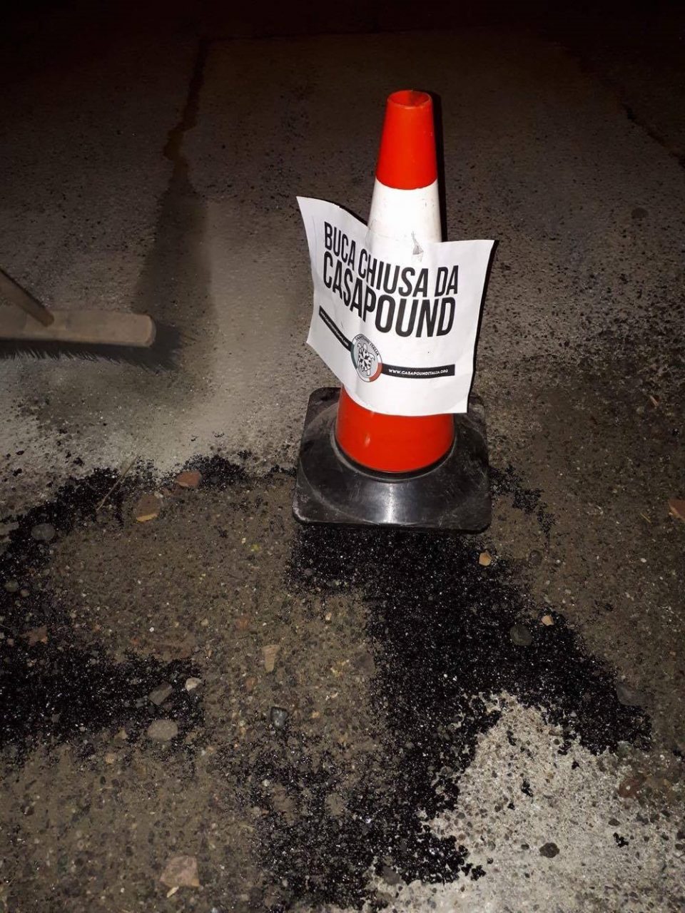 Con il blitz CasaPound l’altra notte ha tappato le buche nell’asfalto di alcune strade della città. I militanti hanno agito dopo le segnalazioni di numerosi cittadini della zona. In particolare sono intervenuti in via Chiusella e via Monte Ferrando dove il manto stradale era diventato in più punti una groviera.