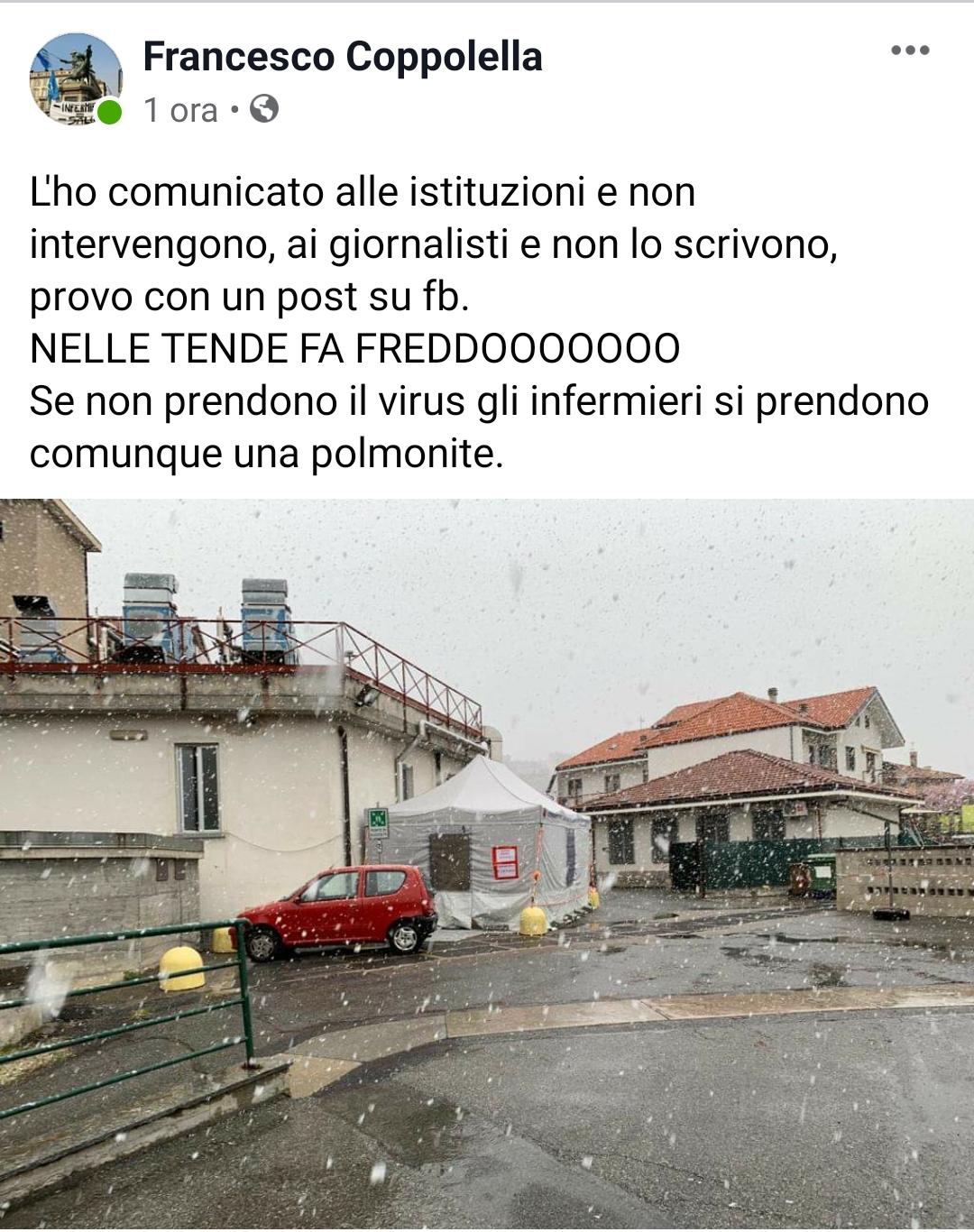 Emergenza Coronavirus, infermieri al freddo rischiano una polmonite