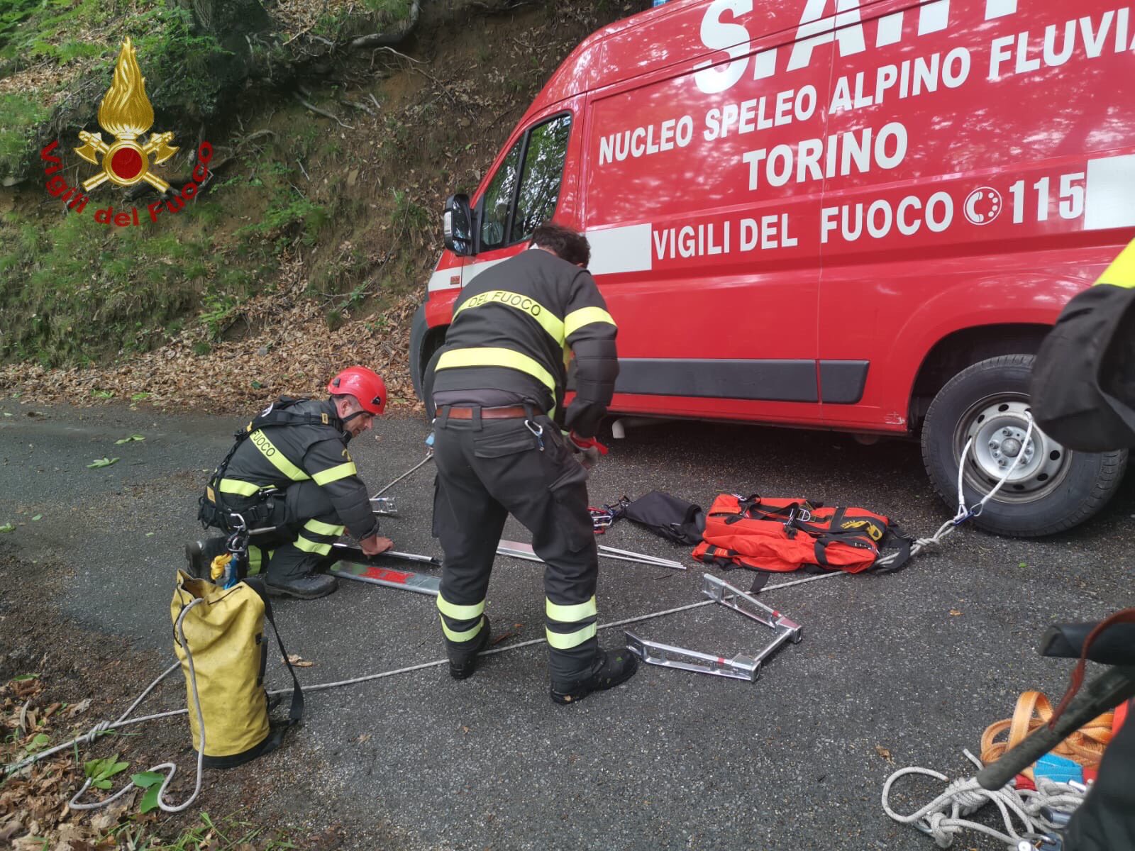 La richiesta di soccorso è giunta alla sop (sala operativa) dei vf è stata agevolata dalle coordinate inviate dal cellulare della figlia. Le squadre si sono calate con una barella nel profondo burrone e con un lavoro d’equipe assieme alla squadra del soccorso alpino hanno riportato sul sentiero la malcapita per affidarla alle cure dei sanitari. Sul posto la squadra “21” centrale, quella dei volontari di Giaveno, il nucleo saf (speleo alpino fluviale), elicottero drago del reparto volo Piemonte con personale saf.