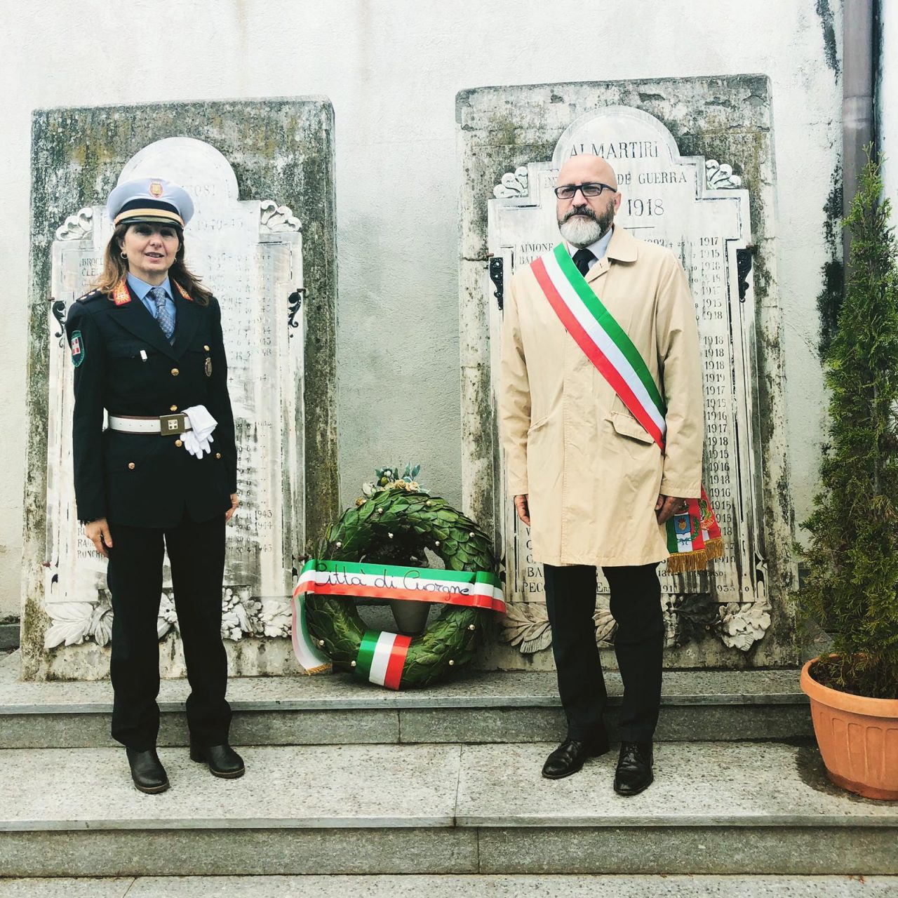 Alle ore 10,30 il corteo ha fatto tappa al monumento ai Caduti in Piazza Risorgimento, per la deposizione della corona di alloro. Dopo il saluto dell’Amministrazione Comunale e del Presidente della Sezione A.N.P.I. di Cuorgnè, Roberto Rizzi, si è tenuta la commemorazione ufficiale tenuta da Stefano Bona della Segreteria Provinciale dell’ANPI Torino. Vi è stato l’intervento anche del Sindaco dei Ragazzi della Città di Cuorgnè, Alessia Giachino. Alla cerimonia ha presenziato l’Accademia Filarmonica dei Concordi. Il sindaco Beppe Pezzetto ha voluto ricordare la figura di Cecilia Genisio recentemente scomparsa. Il primo cittadino si è poi recato al cimitero di Salto per deporre una corona al monumento dei caduti.