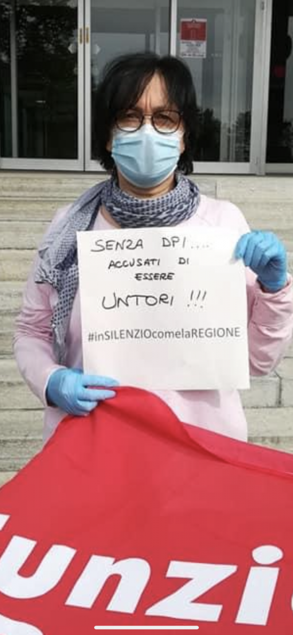 Flash mob anche all’ospedale di Lanzo, il personale sanitario protesta contro la gestione dell’emergenza da parte della Regione.