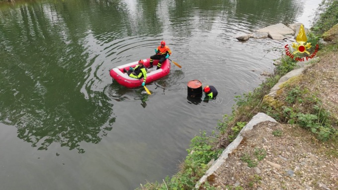 I vigili del fuoco del comando di Torino stanno intervenendo a Volpiano lungo il torrente Malone per la verifica ed il recupero di alcuni fusti gettati nell’acqua.