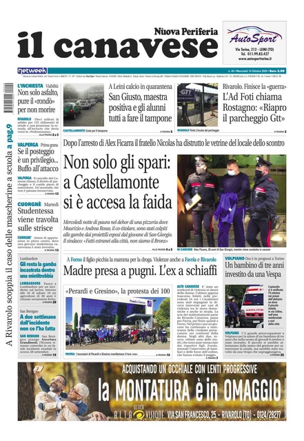 Come ogni settimana sono tantissime le notizie che troverete su Il Canavese – edizione Rivarolo. In questa edizione la sparatoria di Castellamonte alla pizzeria Setterosso e gli atti vandalici compiuti dal fratello di Alex Ficarra, autore del tentato omicidio. Favria, Forno e Rivarolo teatri di violenza domestica. E poi ancora il Coronavirus che colpisce un’insegnante della scuola elementare di San Giusto: tutti i bambini costretti a fare il tampone. A Rivarolo dopo settiamane di battaglie l’Ad di Gtt Foti decide la riapertura del parcheggio interno ai dipendenti. E poi di nuovo la cronaca: investita una studentessa a Cuorgnè e un bambino di tre anni a Volpiano, mentre a San Benigno piange l’81enne rimasto coinvolto in un ncidente stradale due settimane fa e deceduto dopo giorni di agonia. E ancora la protesta dei lavoratori della Perardi e Gresino.