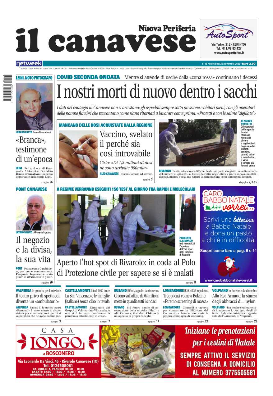 Come ogni settimana sono tantissime le notizie che troverete su Il Canavese – edizione Rivarolo. In questa edizione in primo piano l’emergenza sanitaria e i morti il cui numero nel nostro territorio continua a crescere mentre a Rivarolo ha finalmente aperto l’hot spot tamponi di Rivarolo. Vaccino antinfluenzale: mancano all’appello 4mila dosi ordinate dalla Regione Piemonte. A Leini è lutto per la scomparsa di “Branca”, testimone di un’epoca . Lutto anche a Pot Canavese: è morto Pasquale Ingrosso, ex carabiniere poi divenuto commerciante è stato punto di riferimento in paese. A Lombardore troppi Covid positivi, annunciato lo screening di massa come a Bolzano. Alla rsa di Volpiano arriva la tenda per gli abbracci. A Valperga il teatro diventa un ambulatorio. A Busano il sindaco Chiono mette in guardi i suoi colleghi sul futuro bando per la raccolta rifiuti.