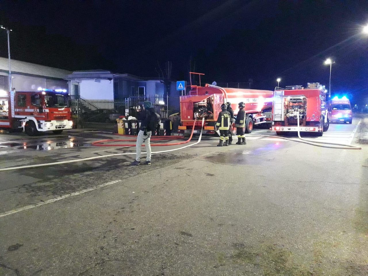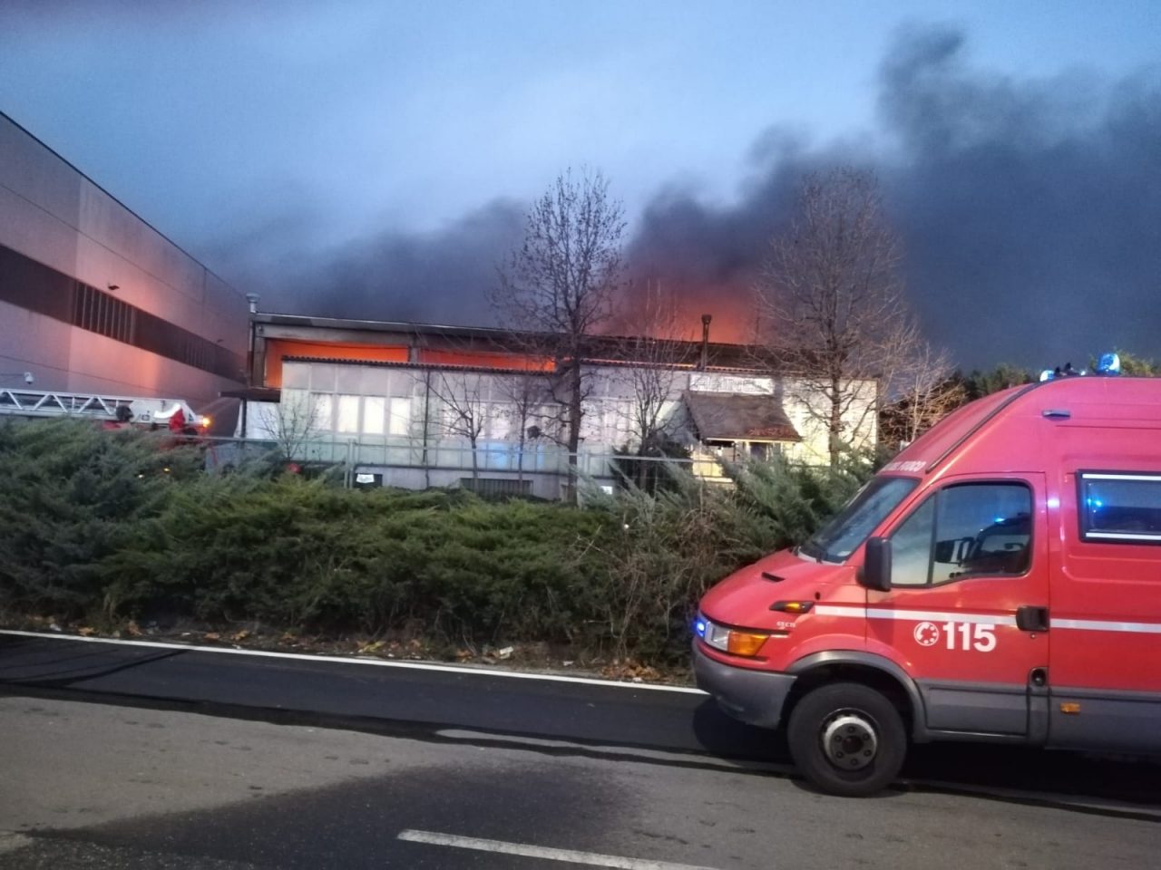 Incendio alla Reinol di Borgaro Torinese, sul posto cinque squadre dei vigili del fuoco.