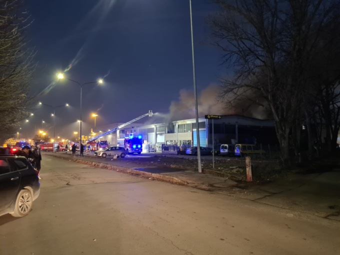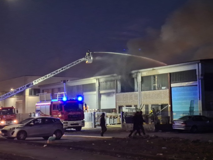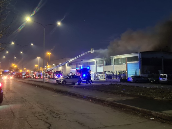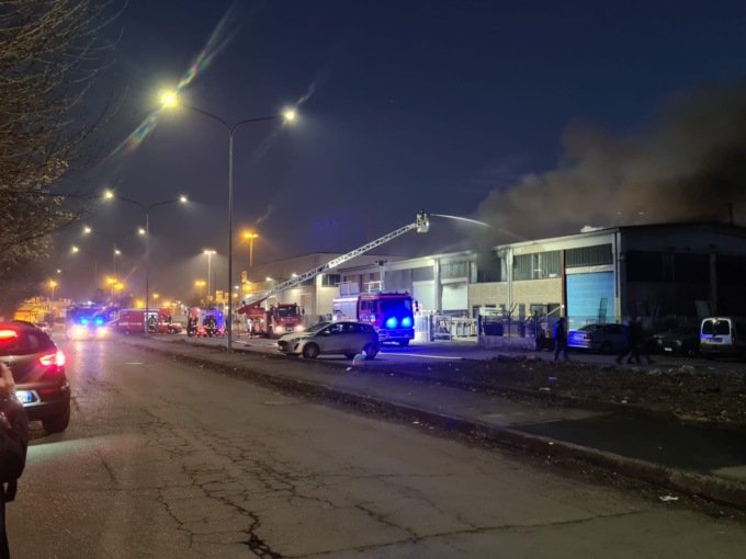Incendio in un’azienda fra Leini e Settimo Torinese, nella zona industriale del Fornacino, questa sera, giovedì 17 febbraio 2022.