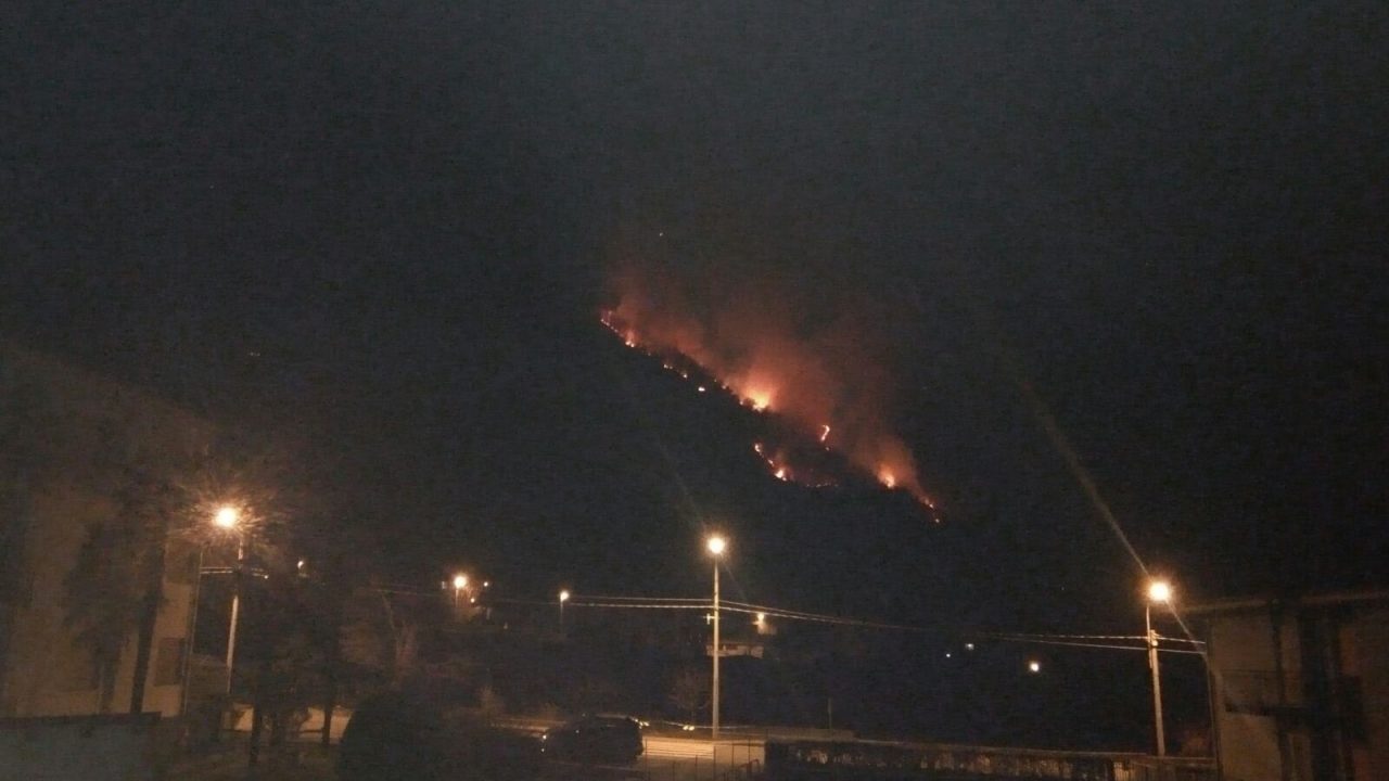 Aggiornamento 1.30: le lingue di fuoco sono sempre più alte e l’odore di fumo inizia a sentirsi nelle case più prossime. I vigili del fuoco stanno lavorando ininterrottamente. Il fronte del fuoco si sta spostando verso l’area di Brosso.