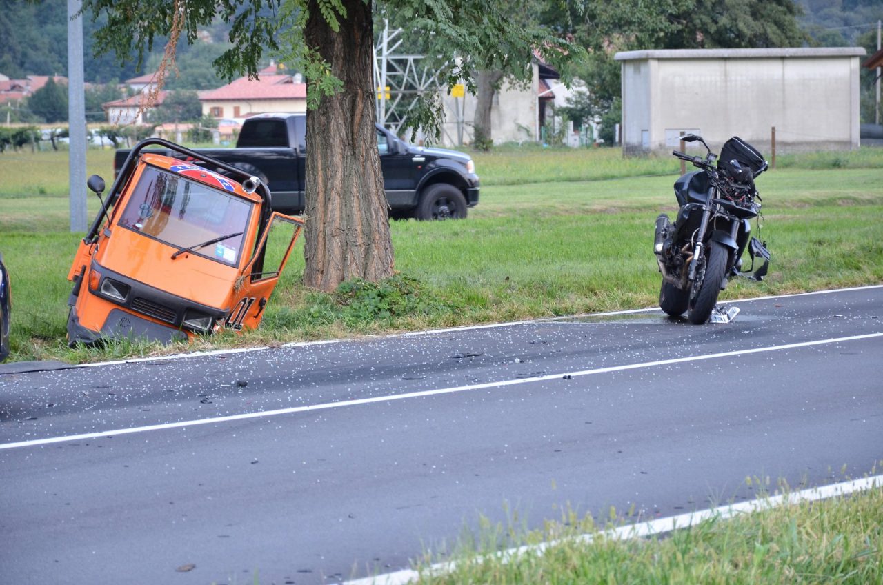Incidente a Settimo Vittone, si scontrano Apecar e moto | FOTO