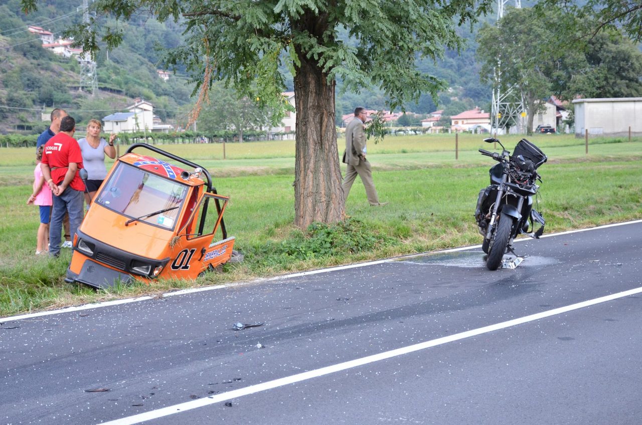 A scontrarsi questa volta sulla statale 26 che collega Canavese e Valle d’Aosta sono stati un’Apecar Piaggio e una Kawasaki 750. L’incidente è avvenuto nel comune di Settimo Vittone, all’altezza di frazione Montestrutto.