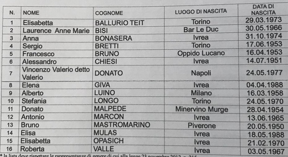 Lista Ballurio per il candidato sindaco del centro destra Stefano Sertoli a Ivrea.