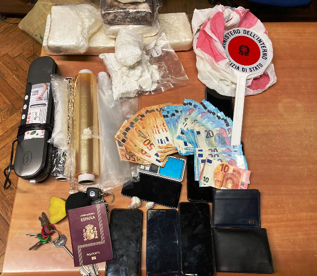 L’uomo non ha il tempo di avvisare il connazionale che lo attende a casa. Proprio con le sue chiavi, permetterà l’ingresso agli investigatori nello stabile e nell’appartamento ormai conosciuti. Il complice aspettava tranquillo, sdraiato sul letto, il rientro dell’amico; ma stavolta lui è in compagnia dei poliziotti, che non ci hanno messo molto a perquisire l’appartamento. Dentro alcuni cassetti della stanza da letto e in cucina, trovano quasi 5 Kg di cocaina, divisa in panetti, e in parte già in ovuli da spacciare. E poi una bilancia di precisione, cellophane per il confezionamento e soldi, parecchi: 2000 euro, probabilmente l’incasso di quel pomeriggio. Un panetto dei 4 era ricoperto di caffè in polvere. Probabilmente per ingannare i cani antidroga, ai controlli in aeroporto.