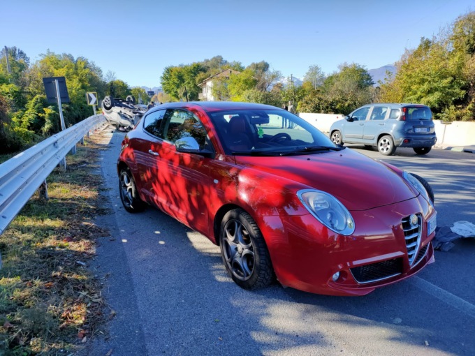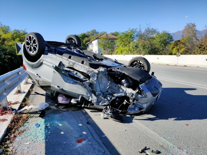 Per cause al vaglio dei carabinieri di Rivarlo giunti sul posto per i rilievi, si sono scontrate una Alfa Romeo Mito e una Ford Ecosport. La Ford dopo lo schianto ha terminato la sua corsa ruote all’aria occupando la corsia di marcia verso Ozegna.