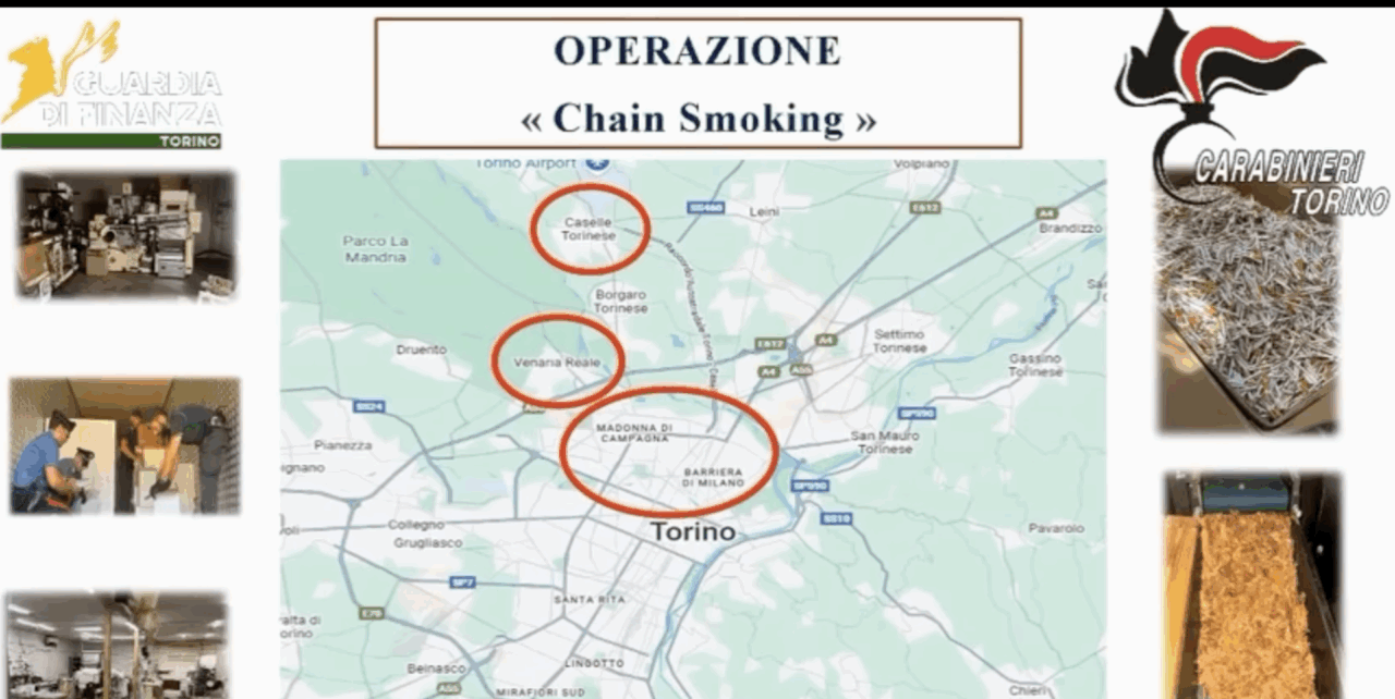 La Guardia di Finanza e i Carabinieri di Torino, con il coordinamento della Procura della Repubblica, hanno portato a termine un’importante operazione congiunta denominata “Chain Smoking”, volta al contrasto del contrabbando di tabacchi lavorati esteri, della contraffazione e dello sfruttamento del lavoro.