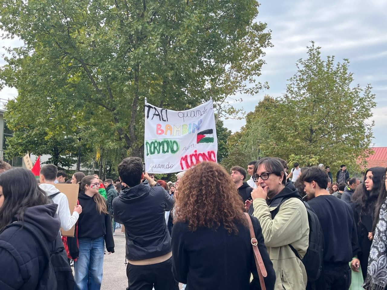 Studenti in corteo in solidarietà al popolo palestinese nella mattinata di oggi venerdì 3 ottobre 2025.