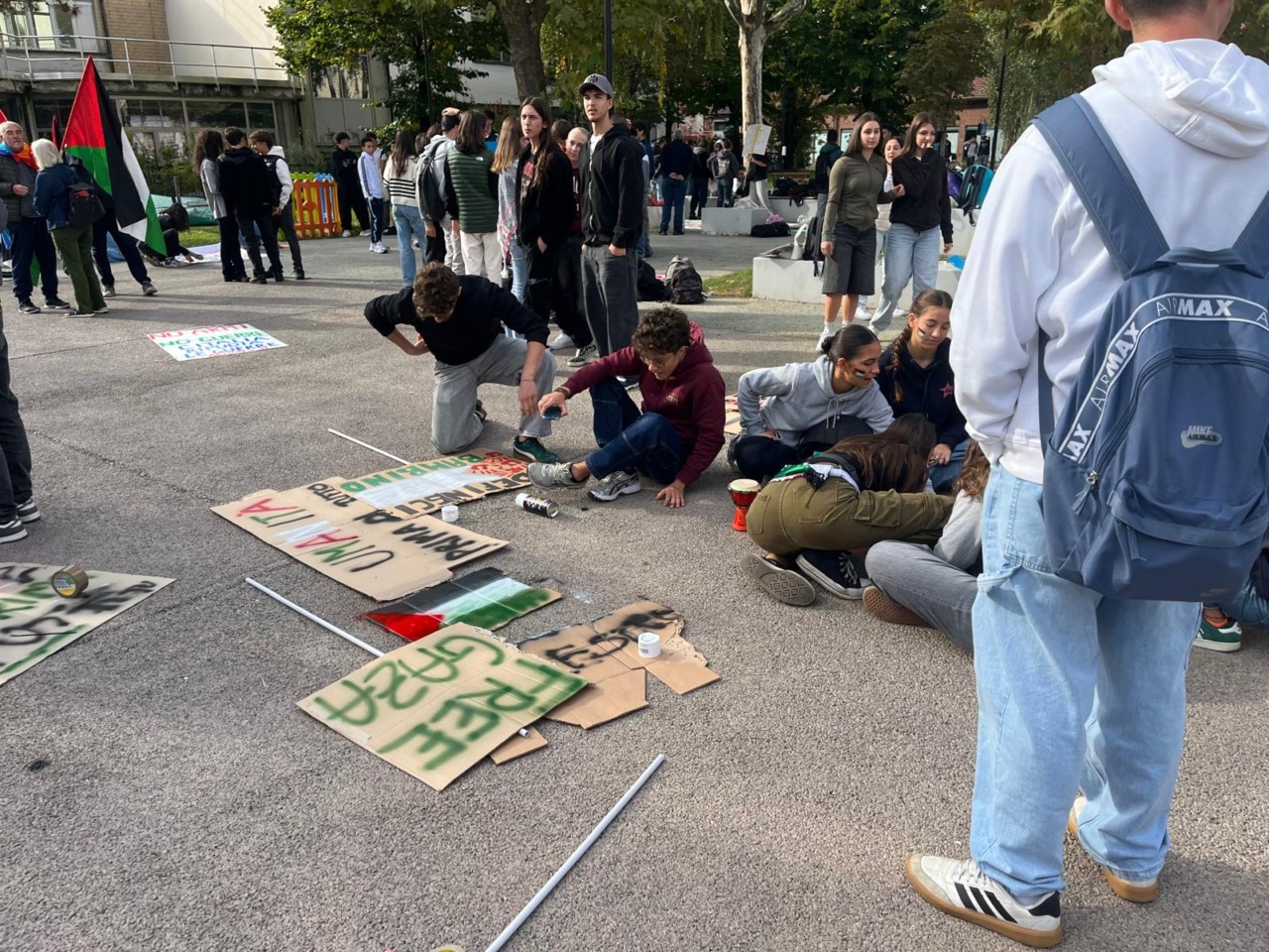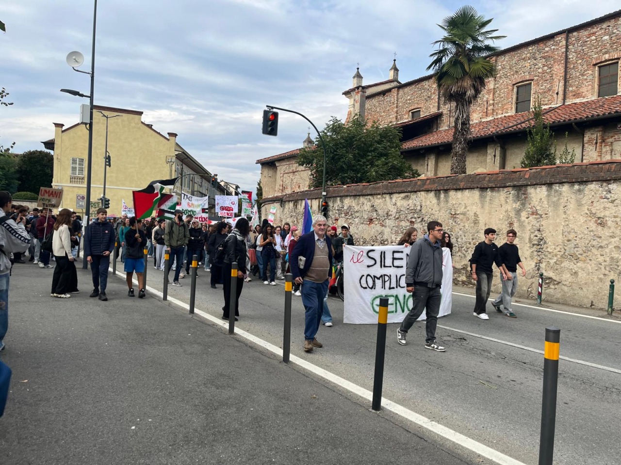 Questa mattina gli studenti della scuola superiore Aldo Moro di Rivarolo Canavese ha deciso di radunarsi nello Spazio Elementare di fronte all’istituto per sollecitare l’attenzione sull’attuale situazione di crisi in Palestina. A supporto degli studenti si sono aggiunti i professori, che hanno contribuito nell’organizzazione dell’evento. Ma anche la comunità locale ha voluto stringersi attorno a questa causa. È stato un momento collettivo di grande riflessione e di presa di coscienza per denunciare il genocidio e le violenze che si stanno verificando in Palestina e, più in generale, in tutto il globo.