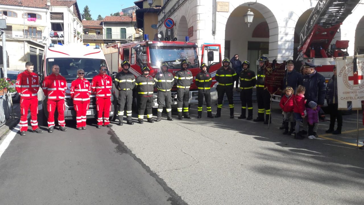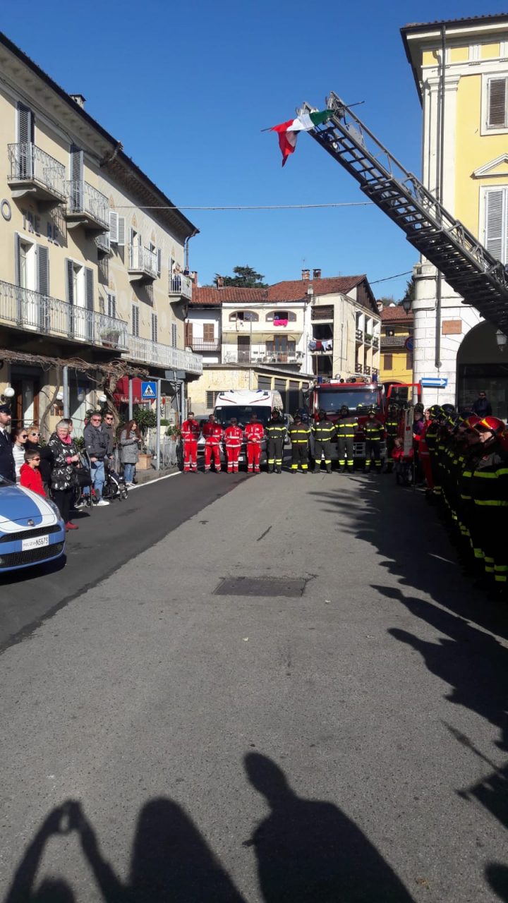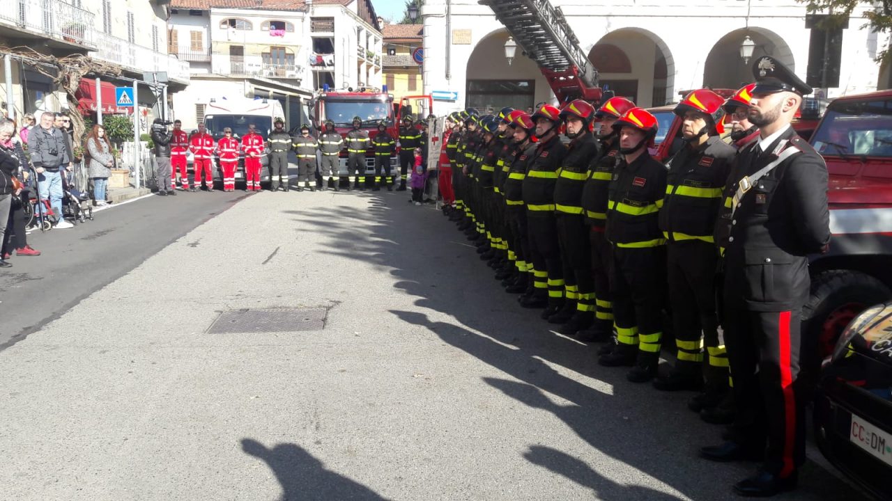Si è svolto alle 11.30 di questa mattina a Castellamonte nel piazzale antistante il Palazzo Comunale, sotto l’Arco di Pomodoro, l’omaggio dei Vigili del fuoco ai colleghi alessandrini Marco Triches, Matteo Gastaldo e Antonino Candido tragicamente morti nella notte fra lunedì 5 e martedì 5 novembre scorsi nello scoppio di una cascina a Quargnento.