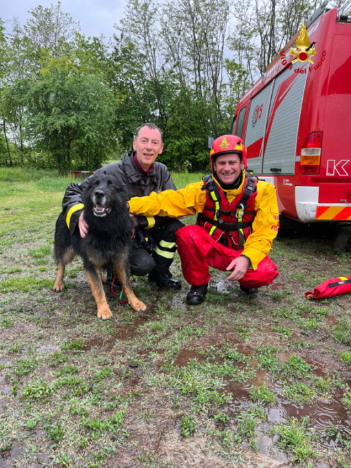 Vigili del fuoco salvano pastore tedesco dalle rapide dello Stura