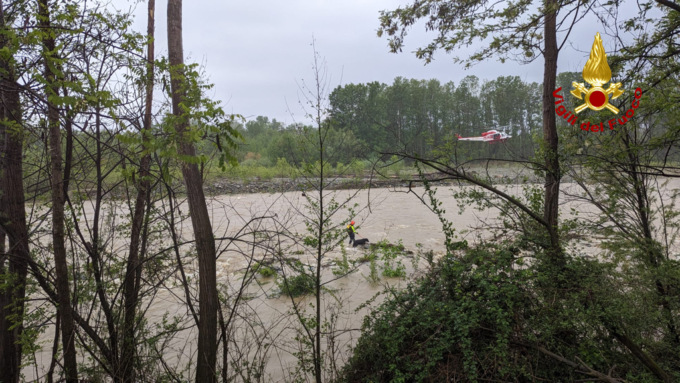 Vigili del fuoco salvano pastore tedesco dalle rapide dello Stura.