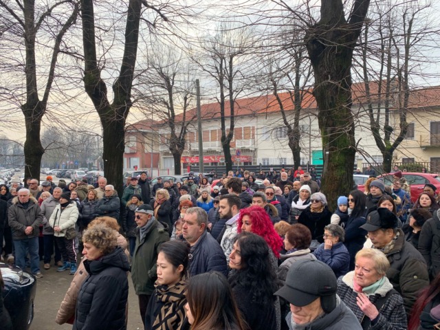 Questa mattina una folla commossa e silenziosa si è stretta alla famiglia di Lin Zhi in questo momento di grande dolore. Il feretro di Andrea è stato trasportato davanti alla sua attività di via Brandizzo, a Volpiano, e qui ad accoglierlo c’erano i familiari e oltre 200 persone. Un momento toccante per tutta la comunità volpianese, dove Andrea e la sua famiglia sono molto conosciuti e apprezzati. Il saluto proseguirà poi alle 13.30. Dal giorno della tragedia sono stati molti coloro che si sono recati davanti all’attività commerciale per deporre biglietti e mazzi di fiori. A far ancora più male è il fatto che Andrea non ha potuto conoscere suo figlio nato pochi giorni dopo la tragedia.