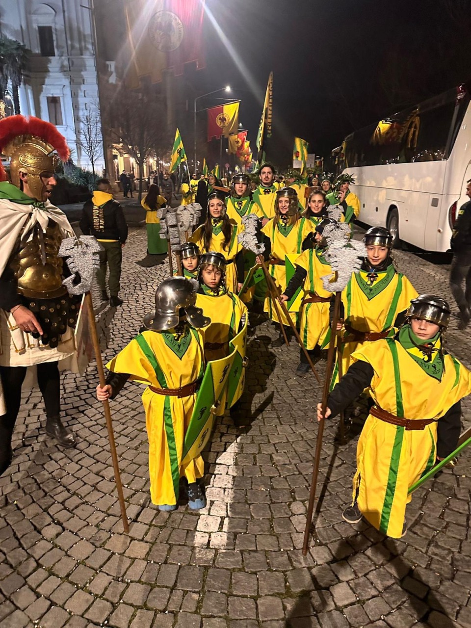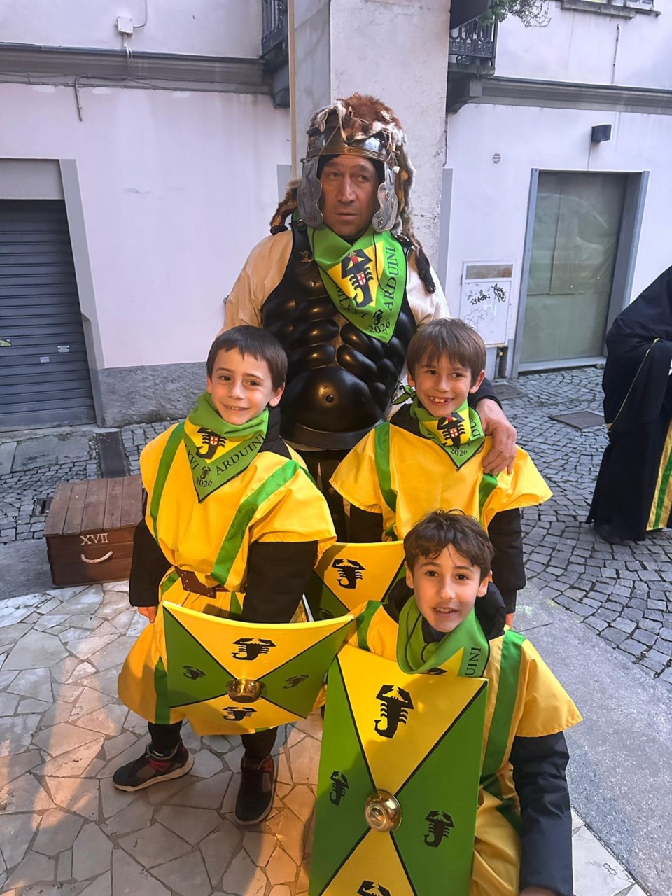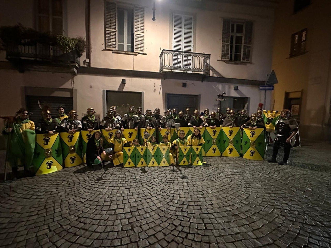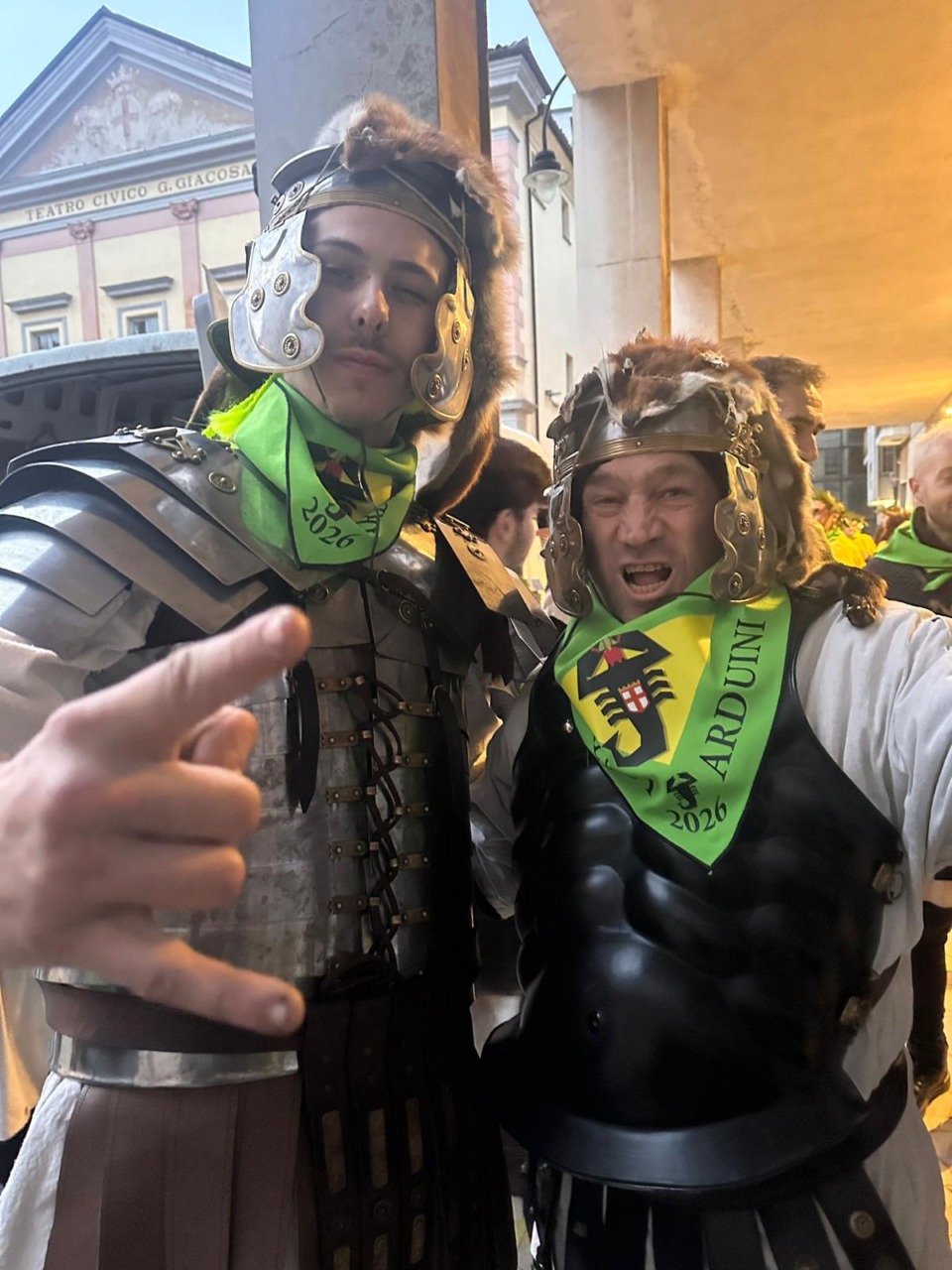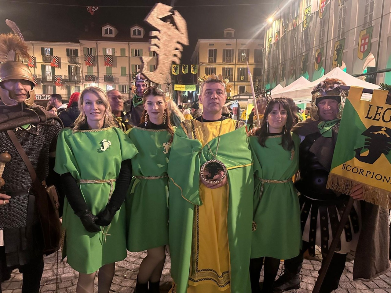 Sabato sera, 14 febbraio 2026, in onore della Vezzosa Mugnaia, Valentina Campesato in Mantovani, la squadra degli Scorpioni d’Arduino ha deciso di omaggiare l’importante passato della città con una sfilata dedicata all’antica Eporedia, declinando la romanità in chiave giallo verde con la preziosa consulenza storico e rievocativa di alcuni iscritti, molto appassionati dell’antica Roma.