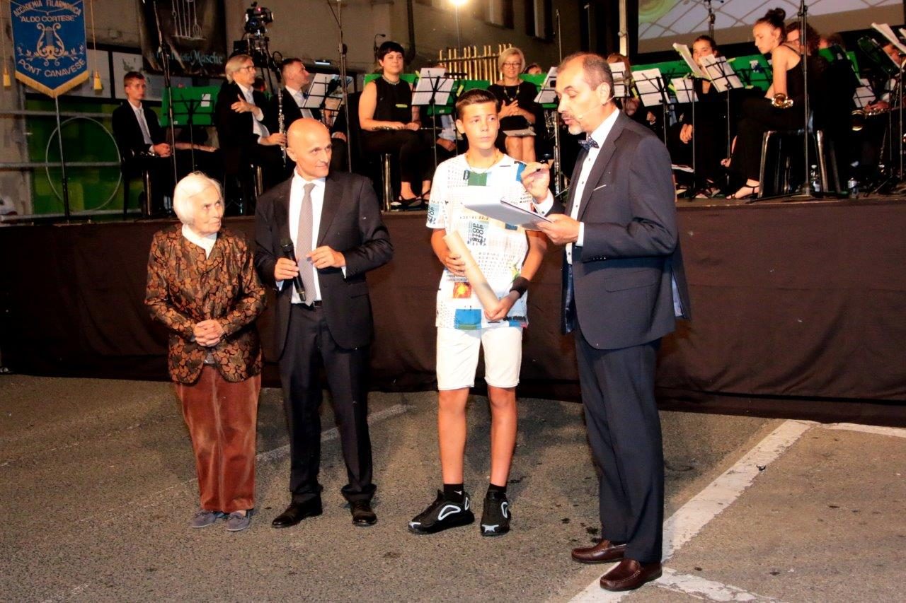 Come da tradizione, durante il concerto, presentato da Franco Basolo e Daniela Colombatto, sono state assegnate anche le borse di studio destinate ad allievi particolarmente meritevoli dell’Istituto Comprensivo di Pont Canavese, intitolate alla memoria del professor Pietro Rastel Bogin, fondatore dell’associazione «Amis dla RuA». Quest’anno il riconoscimento è andato a Joana Andrea Grigorian per la scuola elementare ed a Sebastian De Luca per la scuola media. A consegnare le borse di studio la vedova del professore, Cecilia Videsott, e il figlio Carlo, presidente degli «Amis dla Rua». Moltissime le presenze istituzionali nel parterre del concerto: dal Console onorario delle Filippine Maria Grazia Cavallo, all’onorevole Francesca Bonomo, al consigliere regionale Mauro Fava, ai sindaci di Pont, Paolo Coppo, Cuorgnè, Beppe Pezzetto, Rivarolo, Alberto Rostagno e Colleretto Castelnuovo, Aldo Querio Gianetto.