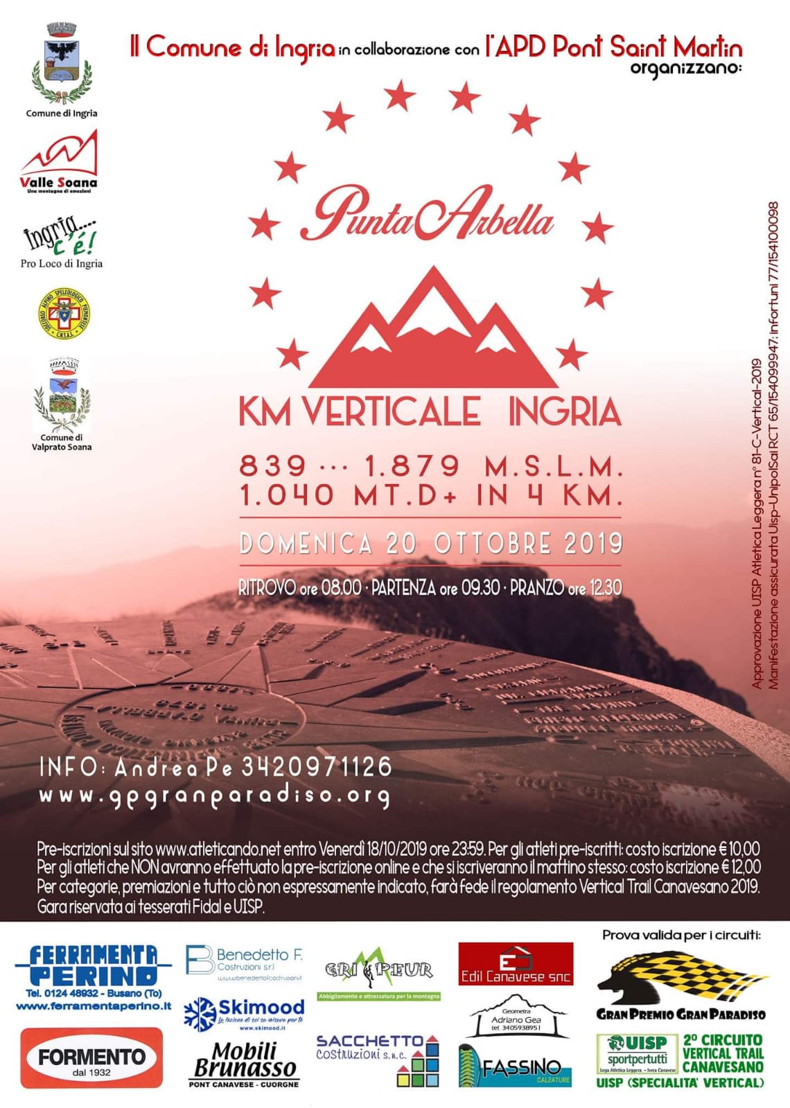 Bel tempo che gli organizzatori del 4° Km Verticale Ingria-Punta Arbella sperano che permanga anche domenica 20 ottobre, quando gli appassionati corridori di corsa in montagna potranno sfidarsi partendo dal Capoluogo fino a 1879 metri d’altezza. Il ritrovo per gli appassionati sarà dalle alle ore 8, con partenza alle 9.30 e al termine pranzo presso il salone della Pro Loco di Ingria.