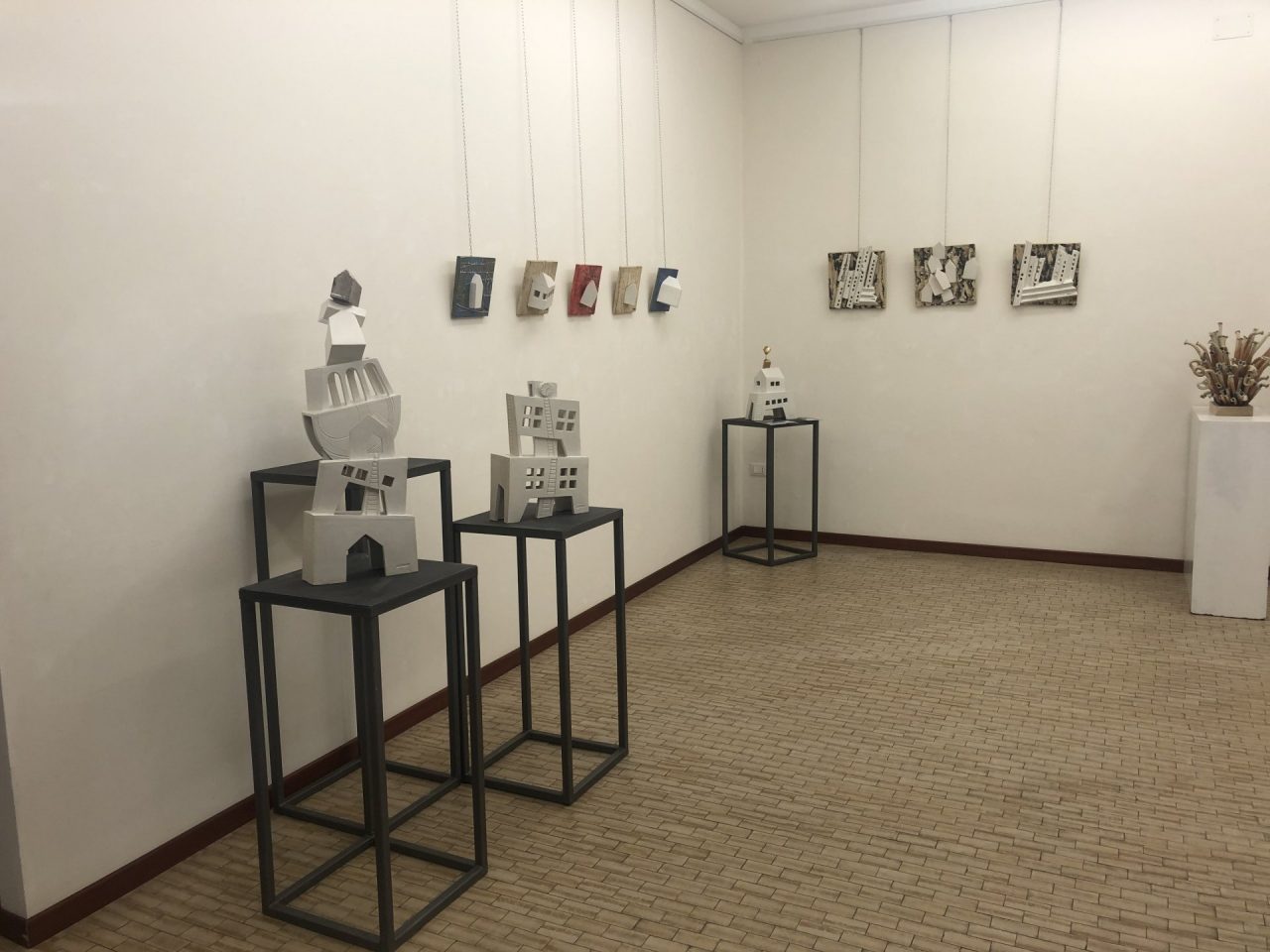 Protagonista della mostra “La ceramica in due mondi” è l’artista castellamontese Sandra Baruzzi con le sue “Dimore del tempo sospeso”. “L’ ininterrotta esplorazione di strade inusitate ha ora portato l’artista al periodo bianco. Bianche sono le sue ultime dimore: bianche del bianco del gres, bianche del bianco opaco dello smalto, bianche di un bianco che pare fare passare la luce – spiega Anna Tabbia – Il bianco è un mondo, anche solo a pensarlo: infinite le sue sfumature – bianco latte, bianco neve, bianco panna, bianco sporco, tanto che i Romani distinguevano tra il bianco candidus, ossia il bianco di luce abbagliante (per questo i candidati politici così si chiamano, candidi dovrebbero essere) e il bianco albus, quello di luce opaca. Infinite le sue valenze simboliche: il bianco è trascendenza, purezza, fede ma anche assenza e mancanza: un’assenza/mancanza del “non ancora e un’assenza/mancanza del” non più”, e per questo in Cina è il colore del lutto. Al bianco paradisiaco si arriva al termine del cammin di nostra vita ma è da un foglio bianco che si comincia. Punto di partenza e di arrivo, mescolanza di colori e assenza di questi. Non a caso l’attività artistica è “controllo e gestione del bianco” e il tema della creatività è, in fondo, il tema del bianco”.