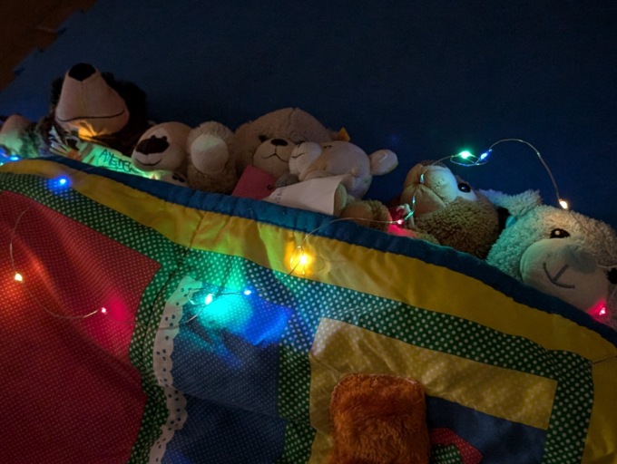Venerdì pomeriggio oltre cinquanta bambini e bambine, da pochi mesi a sei anni, hanno consegnato i loro pupazzi preferiti per una serata alla scoperta dei libri. Orsetti, bambole, supereroi… fino a tarda notte hanno condiviso giochi e letture tra gli scaffali, fino ad aspettare l’alba in biblioteca. Sabato ogni bambino ha ritirato il proprio beniamino, insieme al libro scelto dal pupazzo durante la notte. Si sono poi susseguiti tra mattino e pomeriggio quattro momenti di lettura, suddivisi per età. A ciascun bambino sono stati consegnati un libro della biblioteca, una bibliografia di titoli suggeriti per l’infanzia, molti dei quali disponibili al prestito, oltre ad una foto per documentare le scorribande notturne del pupazzo.