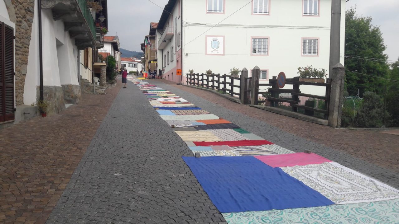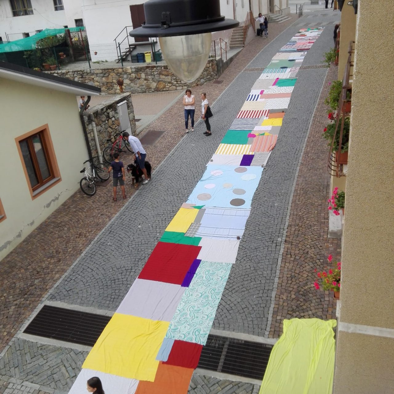 Domenica 15 settembre via Ghella e il centro di Colleretto Castelnuovo si sono, magicamente, vestite di mille colori, con un enorme e vivace telo di stoffe pazientemente cucite insieme tra loro. L’originale installazione ha fatto da cornice alla riuscita manifestazione «LiberiAMO, donne e bambini germogli di vita», organizzata da «Donne per la Valle Sacra», «Casa delle donne» di Ivrea, presieduta da Letizia Carluccio, e «Fuoridaltunnel».