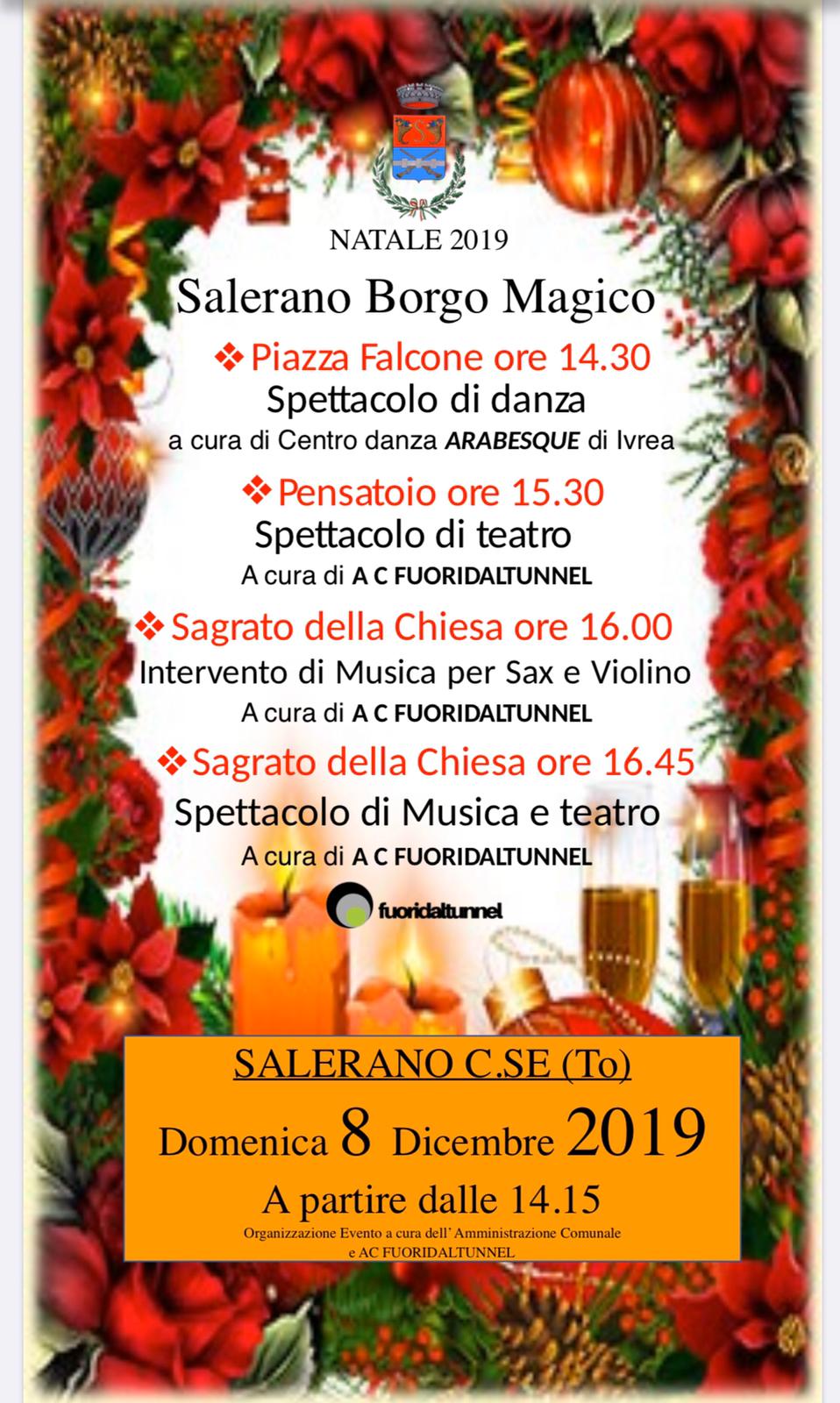 L’Amministrazione Comunale di Salerano e l’AC Fuoridaltunnel hanno organizzato per domani, domenica 8 dicembre 2019, a partire dalle ore 14.15 l’evento dal titolo “Salerano borgo magico”, un borgo pieno di sorprese e spettacoli.