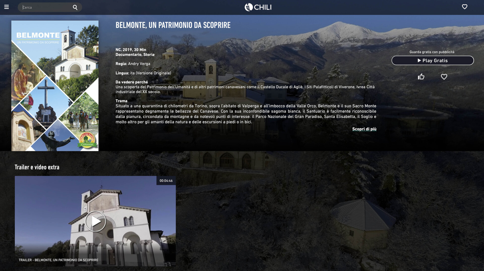 La piattaforma di streaming CHILI contiene da questo momento anche una finestra sul nostro Canavese. Sono infatti quattro i documentari in alta definizione prodotti dalla Masterblack di Andry Verga che in visione gratuita si possono visionare semplicemente iscrivendosi al sito.