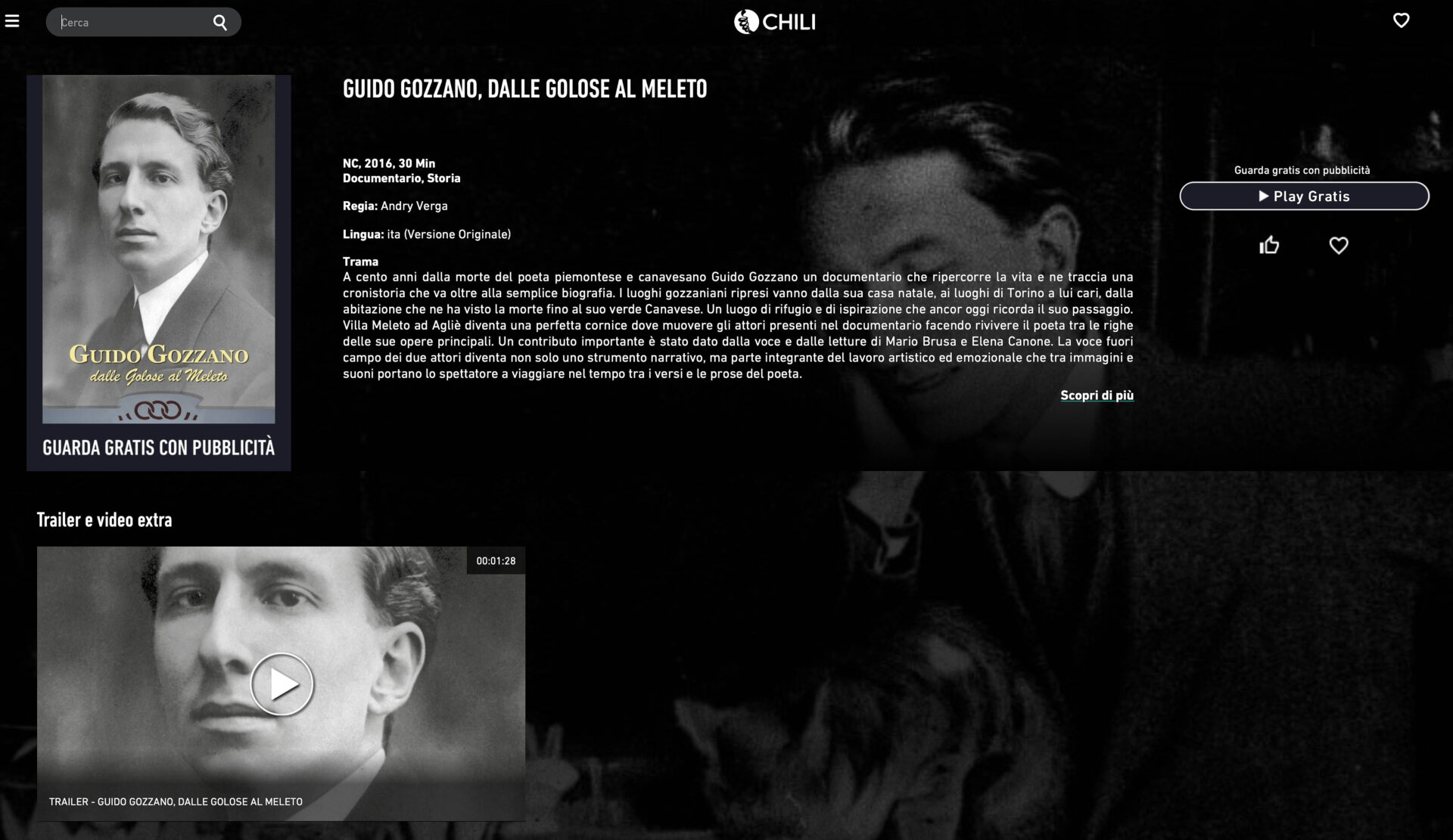 “Essere presenti su questo tipo di piattaforma vuol dire arrivare dove finora non siamo mai arrivati, ovvero aver la possibilità di essere visti in rete in qualsiasi momento e su qualsiasi dispositivo – sottolinea il registra canavesano – Il nostro territorio ha ancora molto da fare in termini di promozione anche se molti passi in avanti sono stati fatti. Questa operazione porta avanti la voglia di presentare al meglio il Canavese e le sue potenzialità. Ogni link al filmato ha una pagina dedicata al progetto, corredata di foto, da una descrizione del video e un trailer. Chili non ha nessun costo di abbonamento e in cambio della visione gratuita ci saranno non più di due interruzioni pubblicitarie (come fosse una trasmissione televisiva) a mio avviso poco invasive visto la loro breve durata. Chili è presente su tutti gli smart TV di ultima generazione al fianco di altri grandi nomi come Amazon, Disney e Netflix”.
