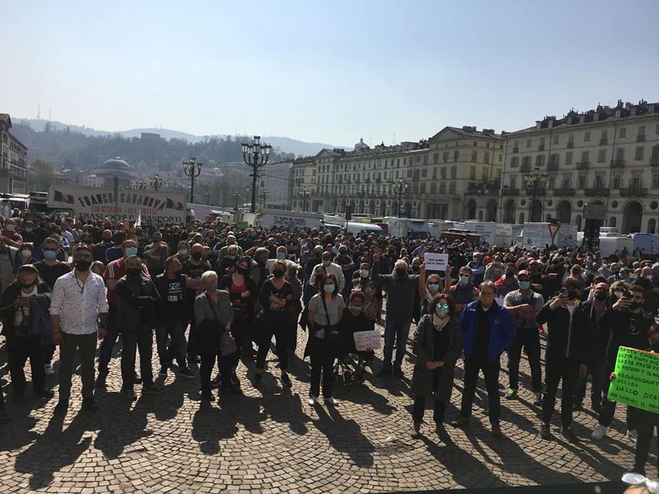Erano circa un migliaio gli ambulanti dell’extra alimentare partiti da tutto il Piemonte per partecipare alla manifestazione che nella mattinata di martedì 30 marzo ha invaso piazza Vittorio a Torino. I mercatali hanno sfilato per la città a bordo di 500 furgoni in segno di protesta contro le limitazioni imposte dalla zona rossa: il corteo di protesta – organizzato da Goia, Ubat e Aapicast – è partito dall’Allianz Stadium ed ha attraversato a colpi di clacson la città.