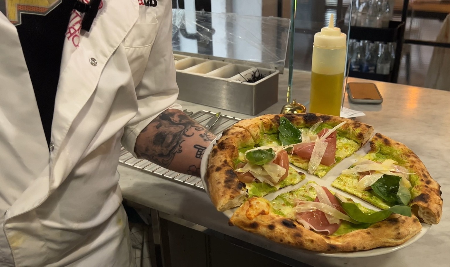 Infatti, Daniele della Pizzeria P ha mostrato alla conduttrice Silvia Valenti e a tutti i telespettatori la cura con cui viene realizzata ogni pizza e in questo caso la “Mezzago in rosa”. Gli asparagi, come anticipato, sono protagonisti: una base di crema di asparagi verdi con mozzarella fiordilatte d’Agerola, su cui – dopo l’attenta e perfetta cottura in forno della pasta – sono stati aggiunti prosciutto dolce al fiocco dell’azienda Marco d’Oggiono (nel Lecchese), julienne del famoso asparago rosa di Mezzago (prodotto tipico della Brianza monzese, dal sapore più delicato) – marinato con olio e sale – e infine basilico fresco.
