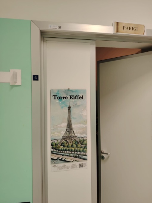 Ora, le porte d’ingresso delle camere di degenza della Geriatria dell’Ospedale di Cuorgnè, diretta dalla dottoressa Claudia Gobbi, sono impreziosite da quadri raffiguranti famosissimi monumenti italiani e stranieri e alle stesse camere è stato attribuito il nome della città di cui il monumento è simbolo. E le pareti dei corridoi del reparto sono adornate da dipinti con vedute panoramiche di Torino, di Firenze, di Roma e di Venezia. Per ciascuna opera sono riportati il nome dell’autore, la tecnica utilizzata e il QRcode per prendere visione del video di realizzazione. Tutto questo è il risultato del progetto “Viaggio in Geriatria”, grazie al lavoro della restailer Elisa Lunardon e dei suoi collaboratori.