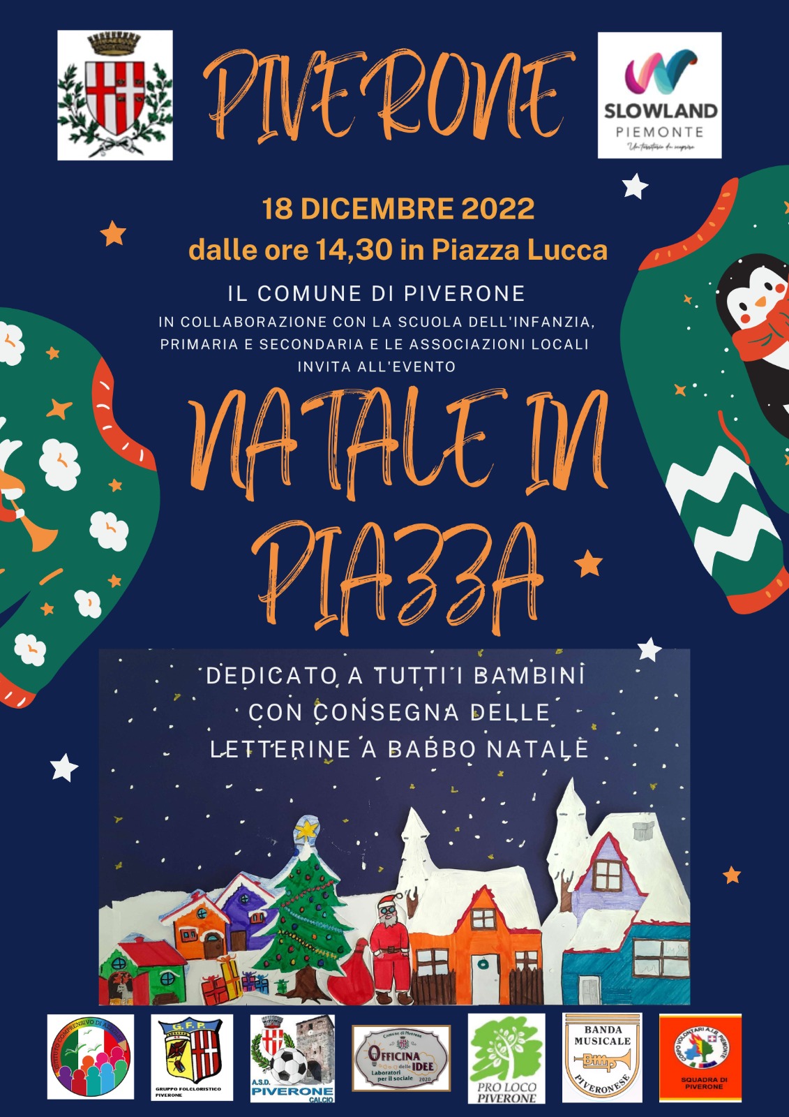 Domani, domenica 18 dicembre, a partire dalle ore 14.30, si terrà la manifestazione “Natale in piazza”, organizzata dal Comune di Piverone. Le scuole dell’Istituto Comprensivo di Azeglio hanno in programma diverse iniziative.