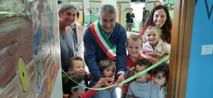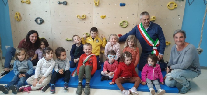 Taglio del nastro alla scuola dell’infanzia, nella palestra  anche la parete da arrampicata. Circa 20 mila euro il costo.