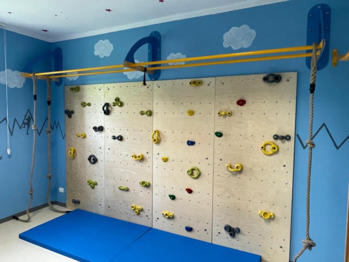 Il progetto coinvolgeva tutte le scuole dell’infanzia dell’Istituto Comprensivo, dove a Ceres è stato pensato questo ambiente innovativo in quanto la scuola aveva arredi molto recenti essendosi trasferita da pochi anni nella nuova struttura. Essendo una scuola di montagna, per mantenere il legame col territorio e fare “innamorare” i bambini dell’ambiente in cui vivono è la palestra è stata dotata anche di una parete da arrampicata. Fondamentale è poi mantenere buone abilità fisiche in un contesto educativo sempre più virtualizzato.