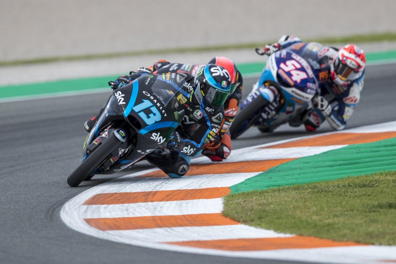 Si chiude con una gara dalla doppia faccia il 2019 dello Sky Racing Team VR46. A Valencia Partenza ritardata e bandiera rossa per una brutta caduta nelle fasi iniziali di gara che ha coinvolto Dennis Foggia, condotto in ospedale per ulteriori accertamenti da un lato. Celestino Vietti Ramus, invece, che taglia il traguardo all’ottavo posto e conquista il titolo di miglior esordiente della categoria dall’altro.