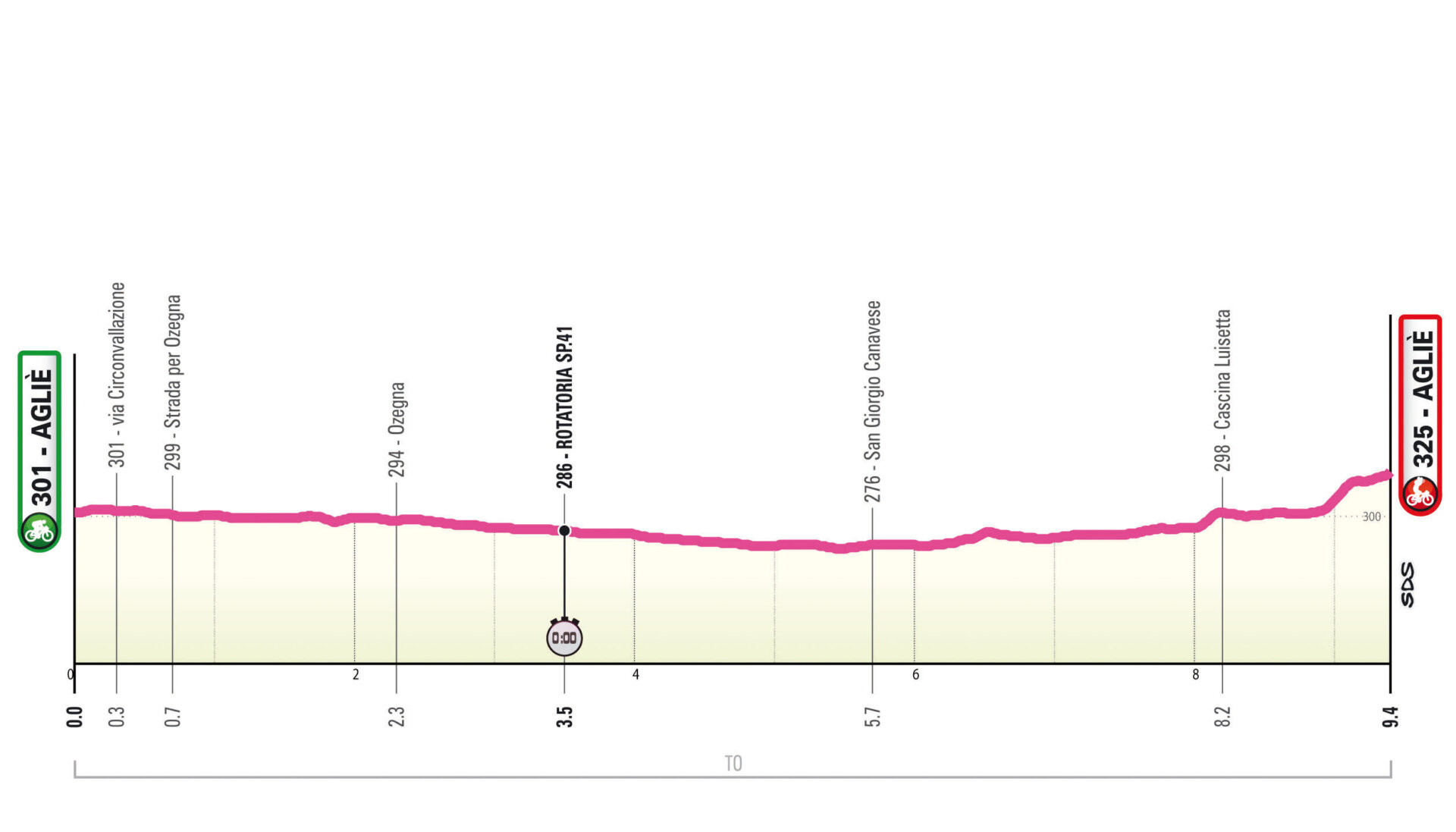 Cronometro individuale breve, molto veloce e adatta agli specialisti contro il tempo. Si compone di lunghi tratti rettilinei raccordati da alcune curve. Unica piccola difficoltà la rampa finale (4% medio) che conduce al Castello di Agliè.