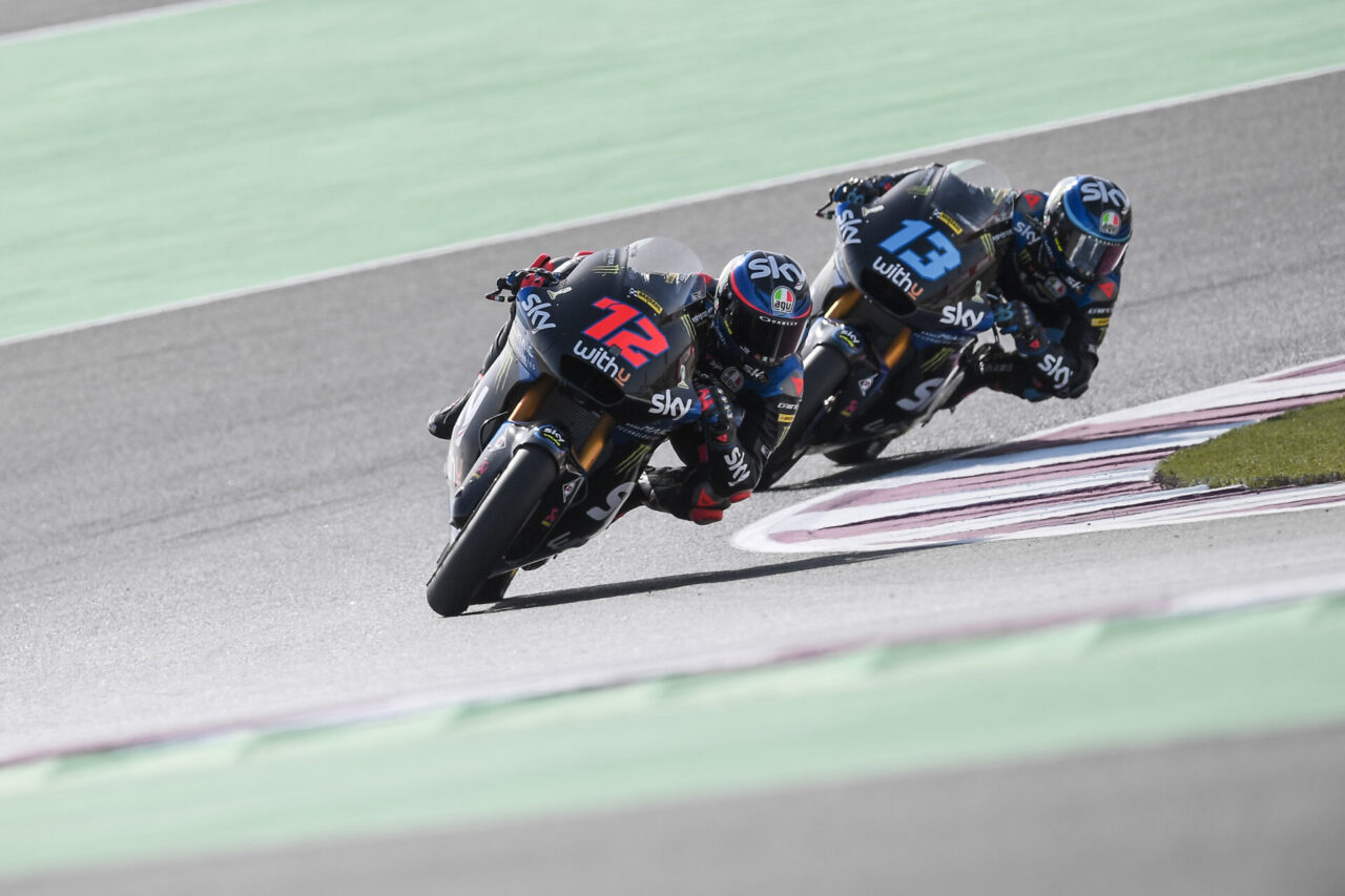 Prima qualifica del 2021 al termine per i piloti dello Sky Racing Team VR46 con Marco Bezzecchi quarto e Celestino Vietti Ramus decimo. Velocissimo fin dalle FP1 e direttamente in Q2, Marco ha confermato le buone sensazioni dei test e ha centrato un ottimo 1’59.052 crono che vale la seconda fila dello schieramento di partenza del GP del Qatar.