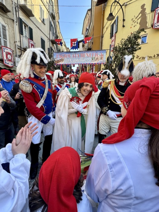 Una Piazza di Città gremita ha accolto la Vezzosa, che dal Cocchio Dorato trainato da tre cavalli bianchi, alla testa del Corteo, ha dispensato senza sosta caramelle, mimose e – soprattutto – sorrisi, sguardi intensi e abbracci virtuali al pubblico. Un pubblico che l’ha ricambiata con passione e affetto, non solo nell’amato Borghetto, dove era attesa da un’intera squadra entusiasta, ma in ogni piazza attraversata. Il sole ha accompagnato la sfilata del Corteo Storico al completo, tra applausi e saluti di una folla profondamente coinvolta.
