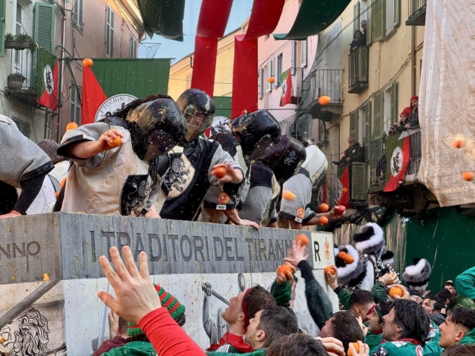 Numerosi anche i media accreditati, attratti dalla spettacolarità della Battaglia e dalle immagini potenti che regala. Ma è l’energia della manifestazione a conquistarli, un’energia che attraversa ogni piazza, ogni gesto, ogni istante del Carnevale. Ad oggi, sono poco meno di duecento gli operatori arrivati in città per documentare l’evento, tra cui i principali broadcaster italiani e diverse agenzie internazionali.