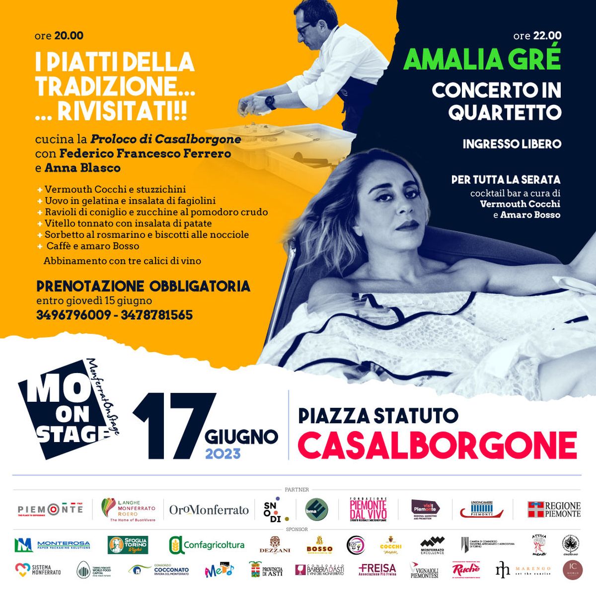 L’edizione del 2023 del Monferrato On Stage è realizzata in partnership con Confagricoltura di Asti, Ecomuseo BMA, Banca di Asti, Vignaioli Piemontesi, Sfogliatorino e Righi, Cocchi Vermouth, Bosso Distillatori dal 1888, Consorzio Barbera d’Asti e Vini del Monferrato, Sistema Monferrato, Scatolificio Monterosa e Camera di Commercio di Torino e in collaborazione con Monferrato Excellence, Istituto d’Istruzione secondaria “G. Penna” di Asti, Torino-Piemonte World Food Capital, Attiva mente, BMU Booking and Management e Meta.